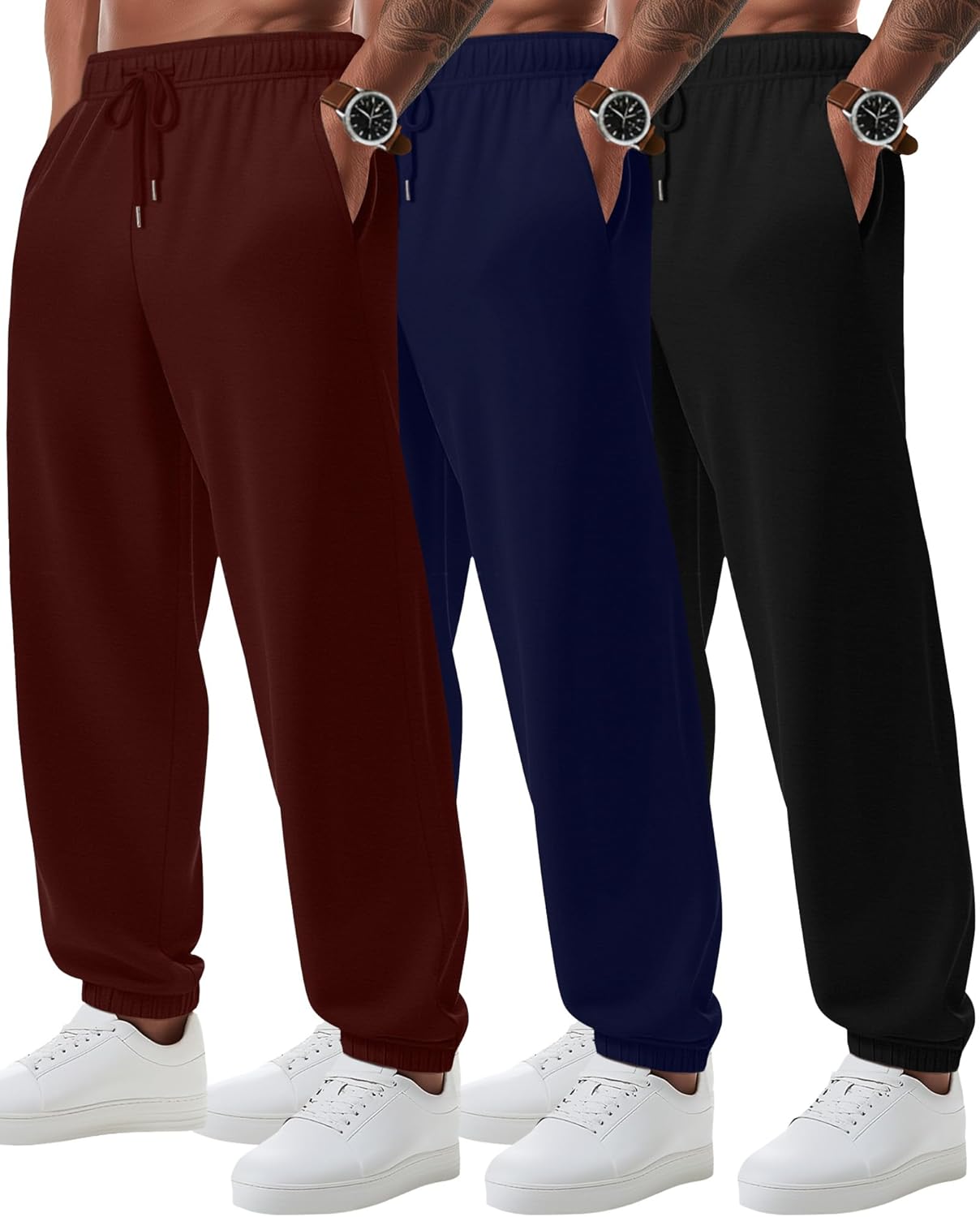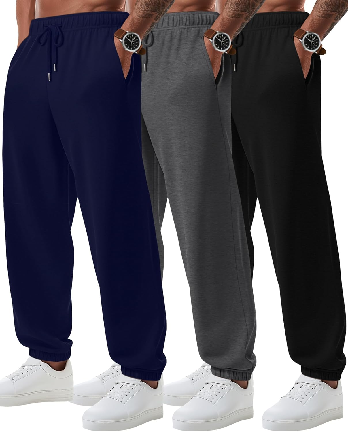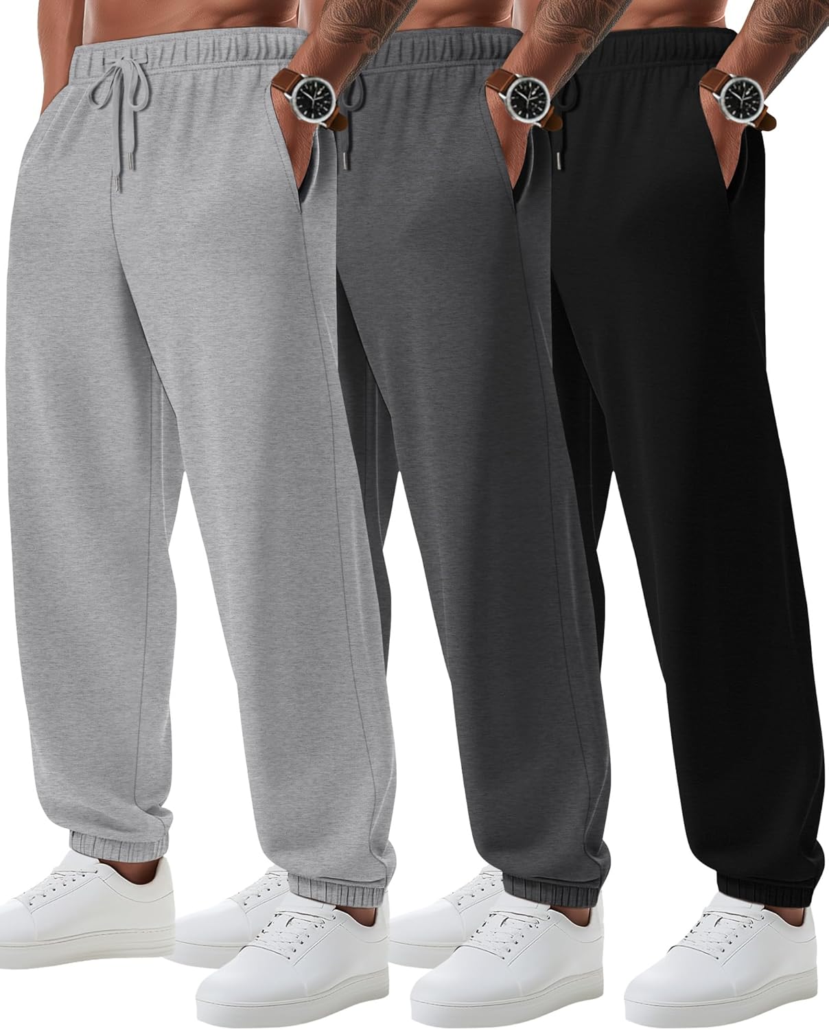3 Pack Big and Tall Sweatpants for Men Athletic Workout Jogger Lounge Pants with Pockets and Drawstring