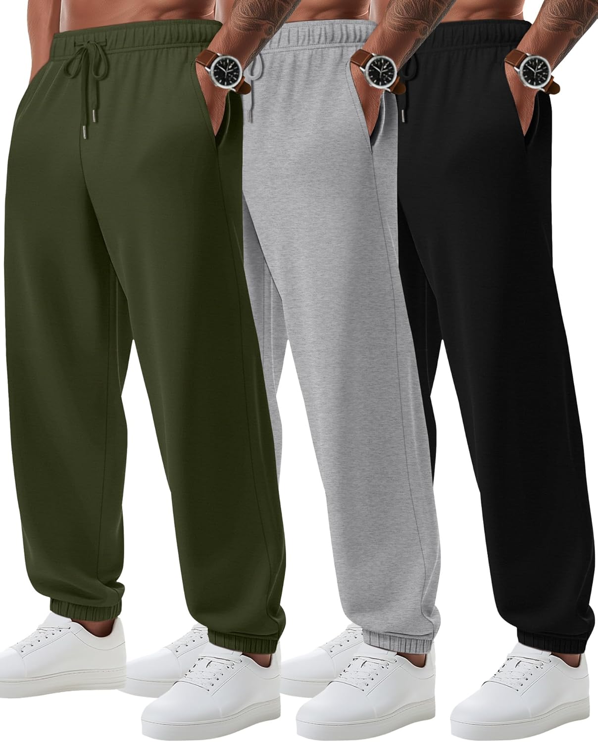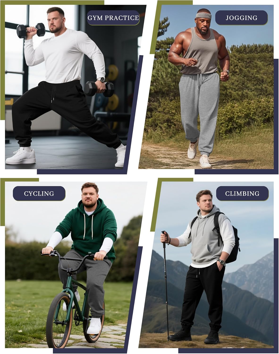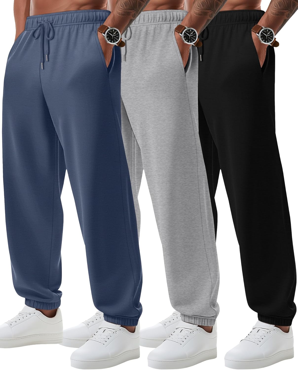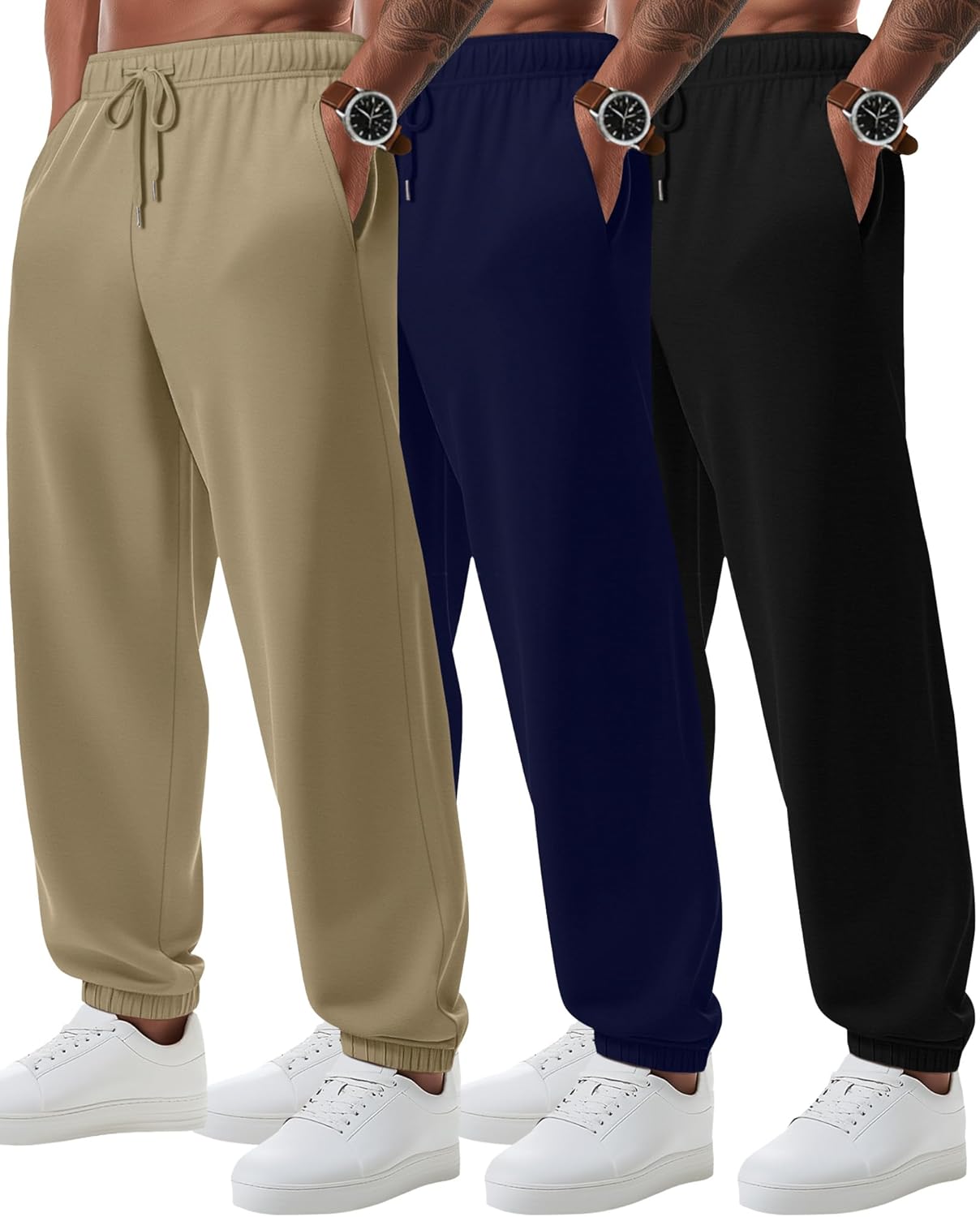 3 Pack Big and Tall Sweatpants for Men Athletic Workout Jogger Lounge Pants with Pockets and Drawstring