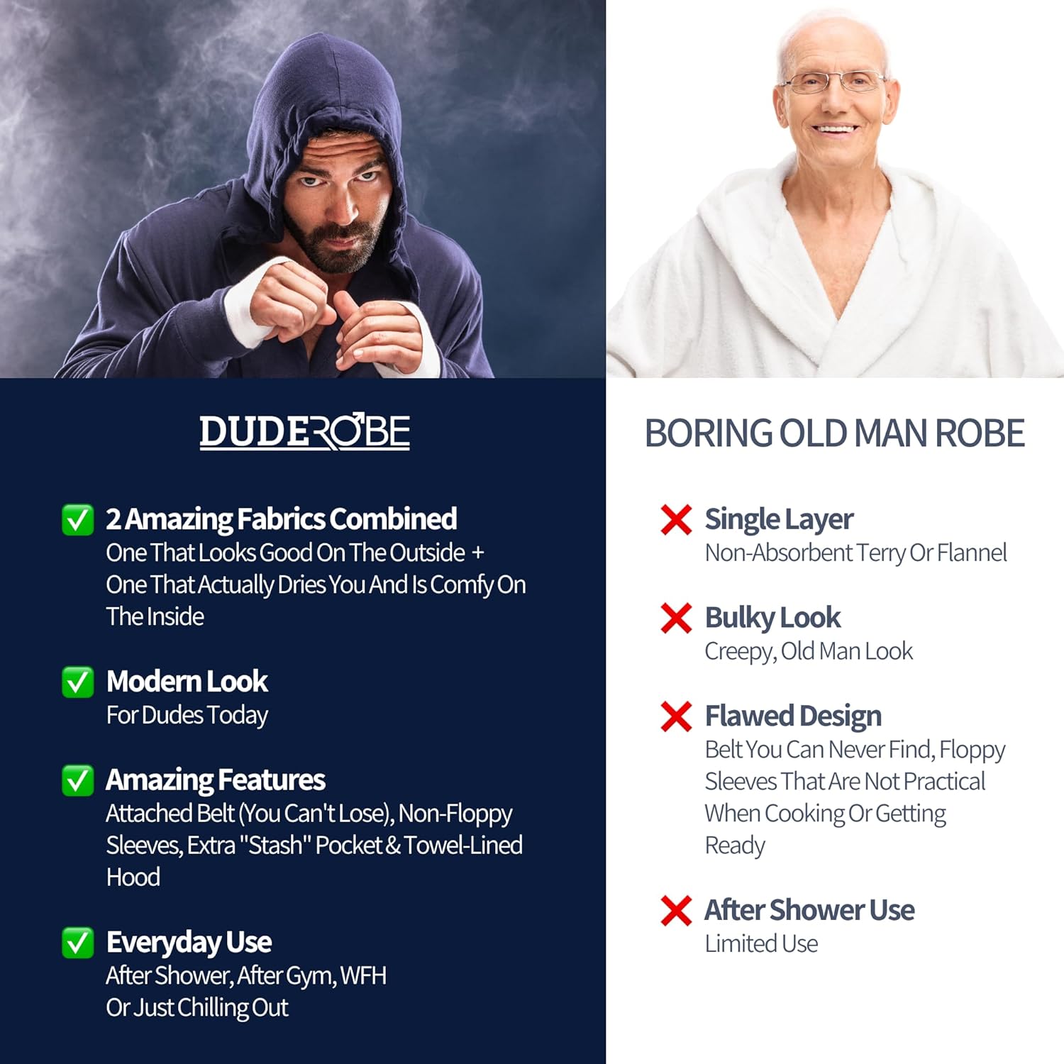 DudeRobe Men's Robe – Hooded TERRY Bath Robe for Men with Pockets | Soft, Comfy Men’s Bathrobe from Shark Tank
