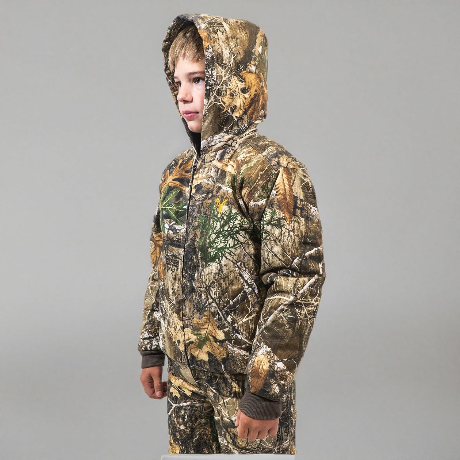 HOT SHOT Youth Insulated Twill Camo Hunting Jacket, Insulated Boy's Winter Coat, Ultra Quiet Camouflage Kids Hunting Gear