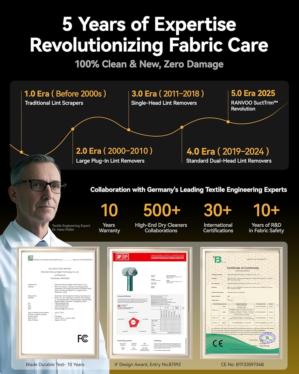 [1s 100% 织物更新] [智能布料护理] RANVOO 专业织物剃须刀,双头电动充电绒毛去除器绒毛/药丸,适用于毛衣、衣服和家具、沙发、宠物毛发